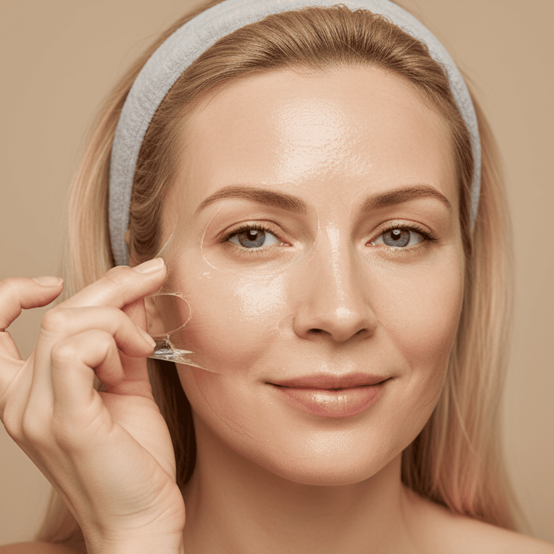 Die Textur startet als transparentes, gelartiges Serum und verwandelt sich über 20-30 Minuten in eine feste, abziehbare Schicht, die sich wie eine zweite Haut anfühlt.