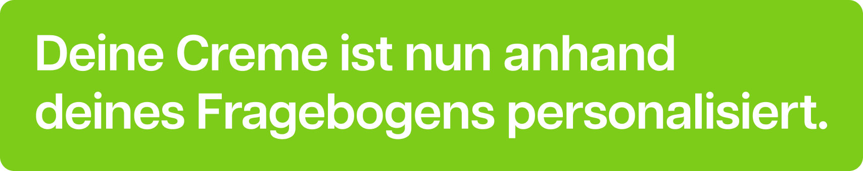 Da die Creme personalisiert nur für dich hergestellt wird, können wir dir hier noch nicht deine finalen Inhaltsstoffe nennen.